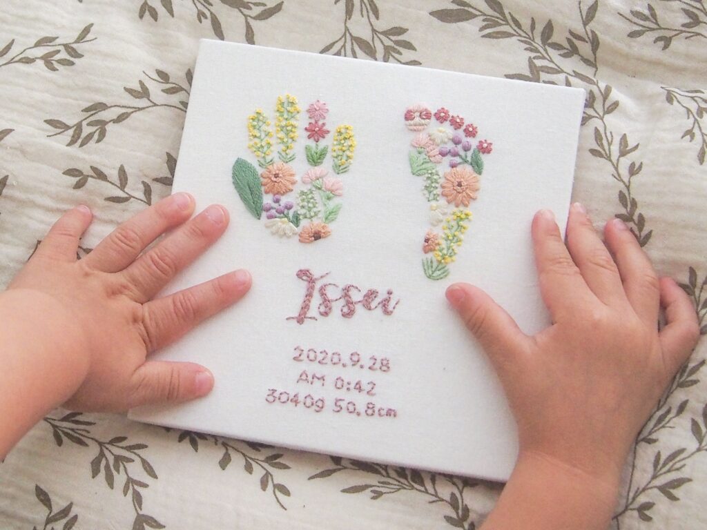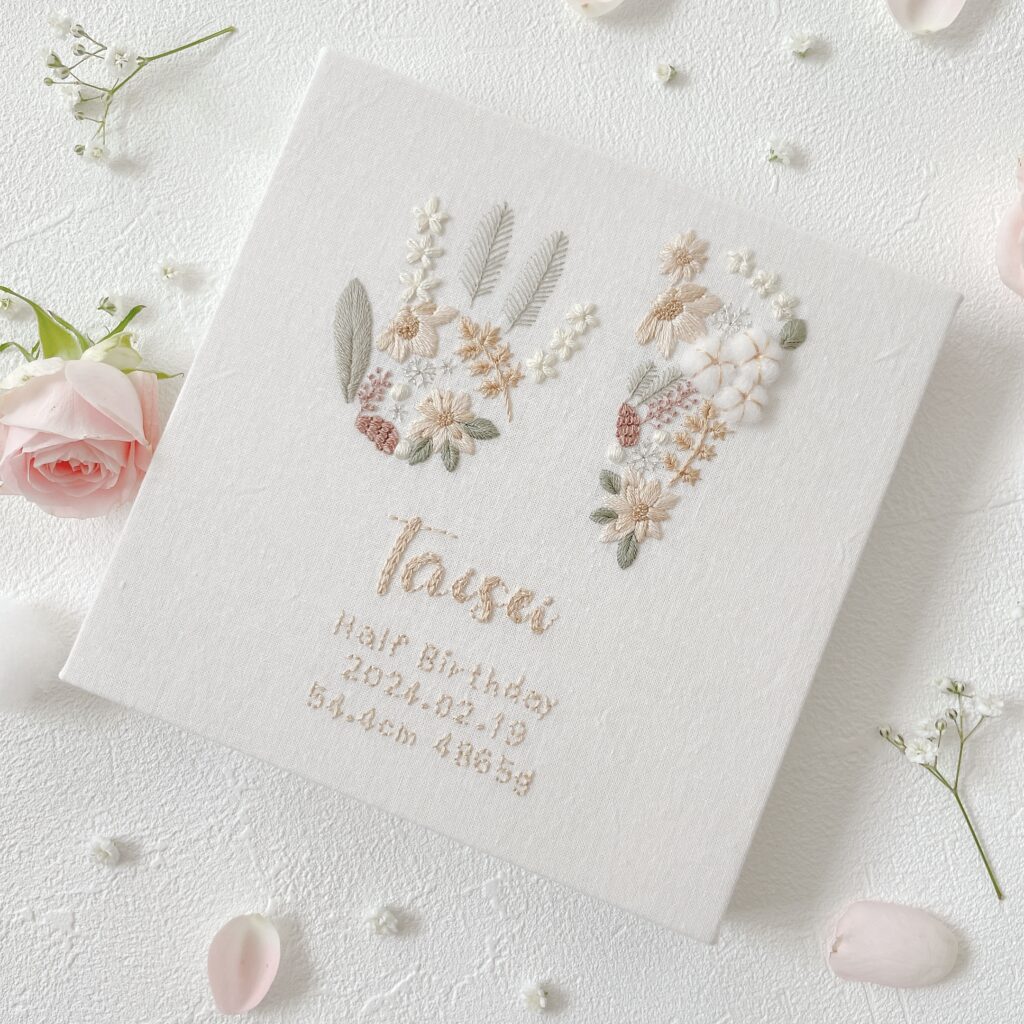 私がBaby刺繍を制作するときに大切にしているのは、手形や足型に込められたひとりひとりの物語に寄り添うことです。