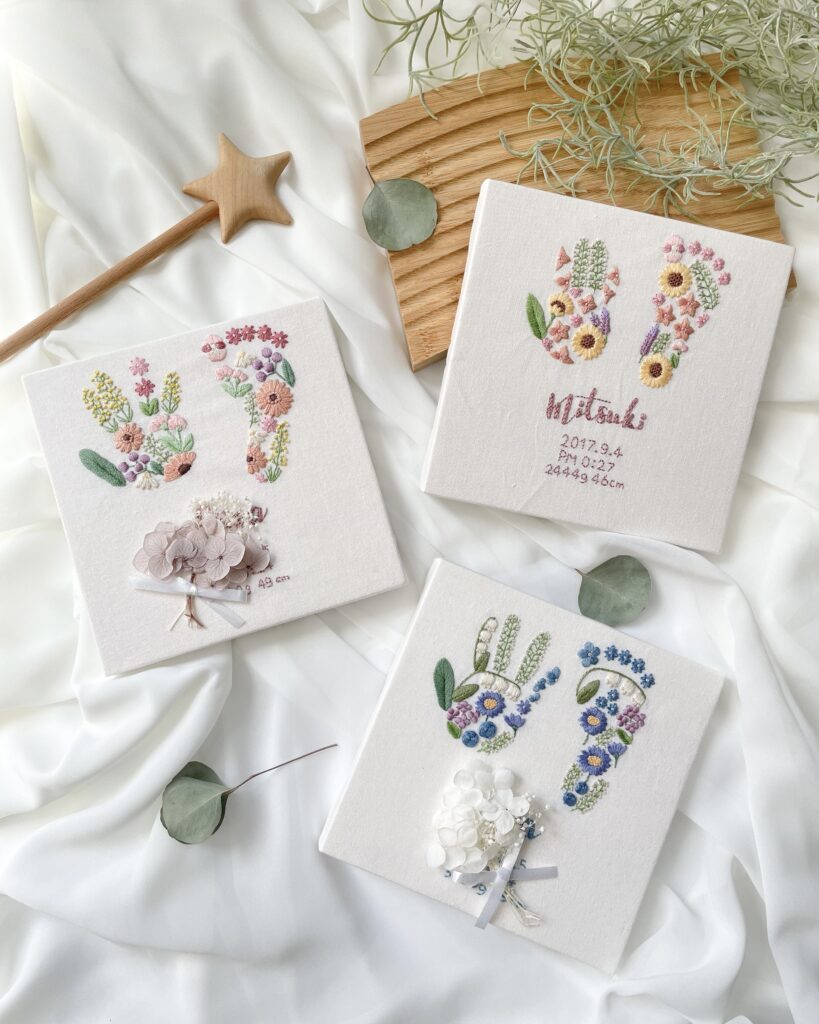その大切な一瞬を「糸」というやさしくて繊細な素材で残せることは、赤ちゃんのふわふわとした存在にどこか似ている気がします。